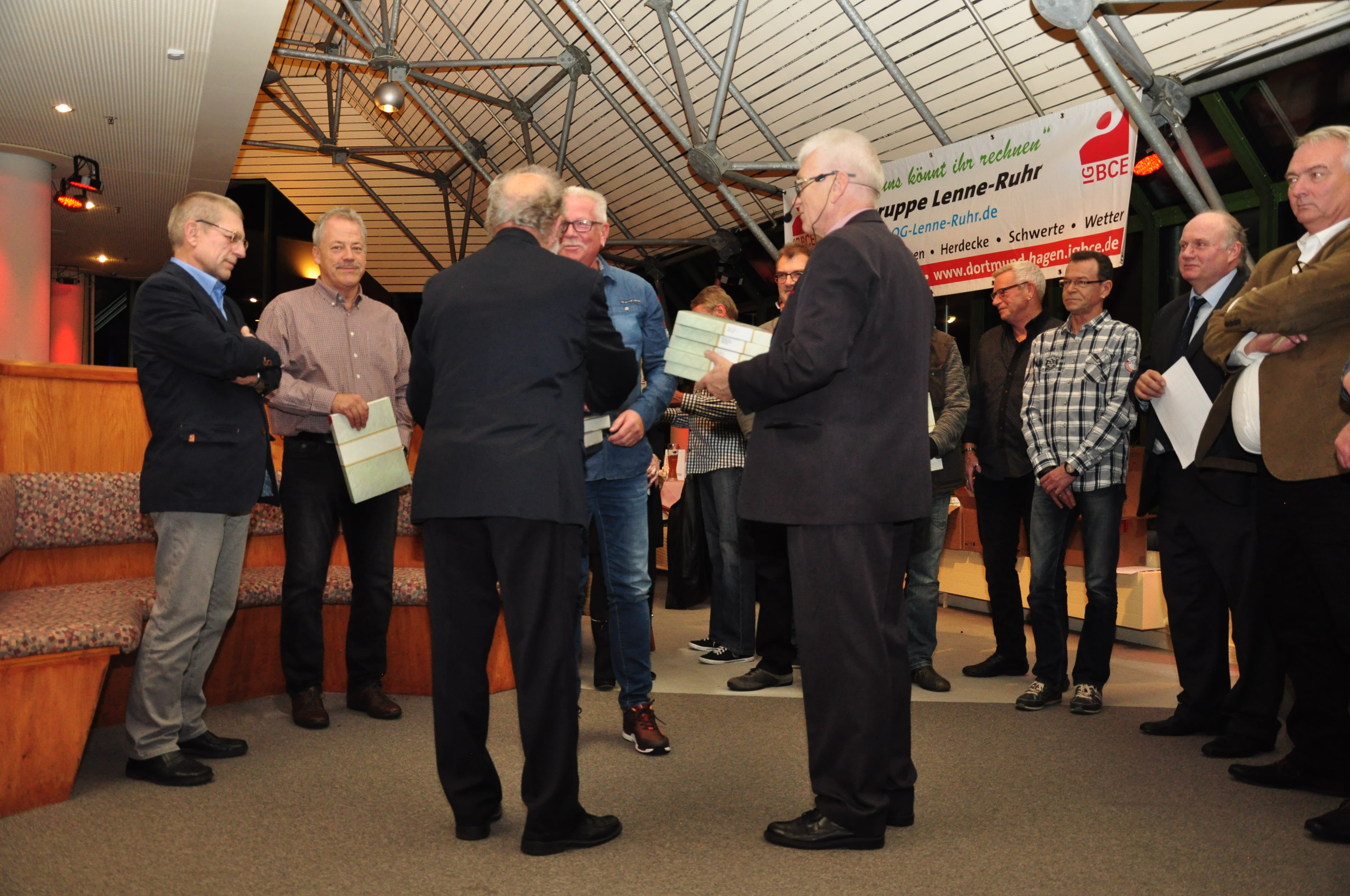 Die Ehrungen wurden durch den Kollegen Karl-Heinz Wrede der Ortsgruppe Lenne-Ruhr IGBCE und dem Kollegen Gerhard-K Jagusch vom Bezirk der IGBCE vorgenommen.