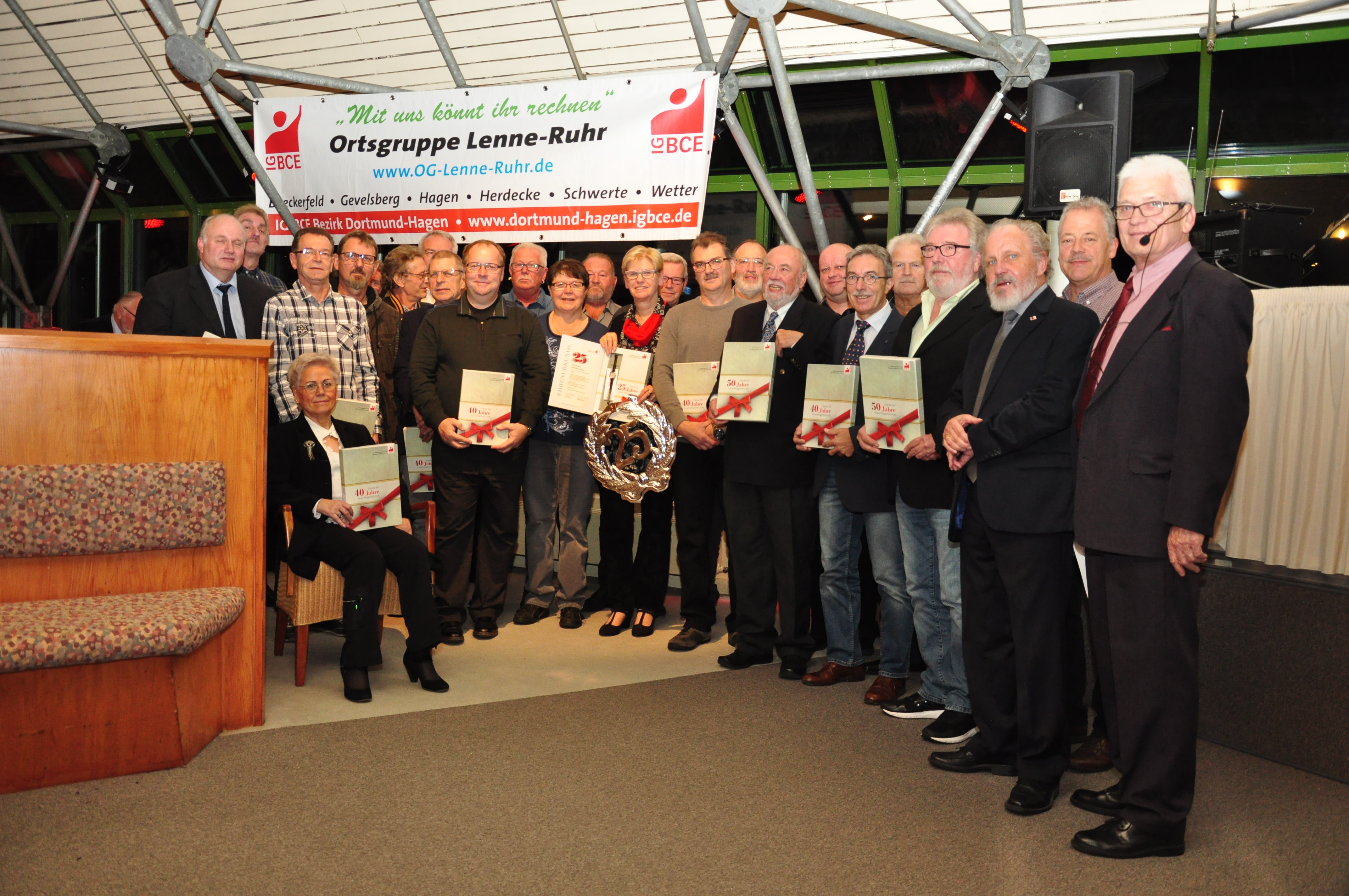 In einem feierlichen Rahmen wurden die Jubilare aus den Mitgliedsbetrieben der IGBCE Ortsgruppe Lenne-Ruhr für 25, 40, 50 und 60 jährige Treue ausgezeichnet.